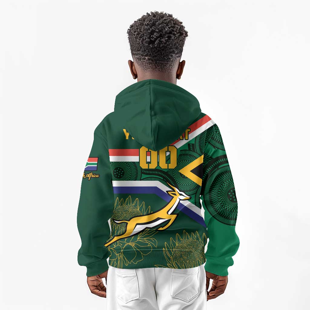 Custom South Africa Rugby Kid Hoodie Springboks Mascot African Pattern