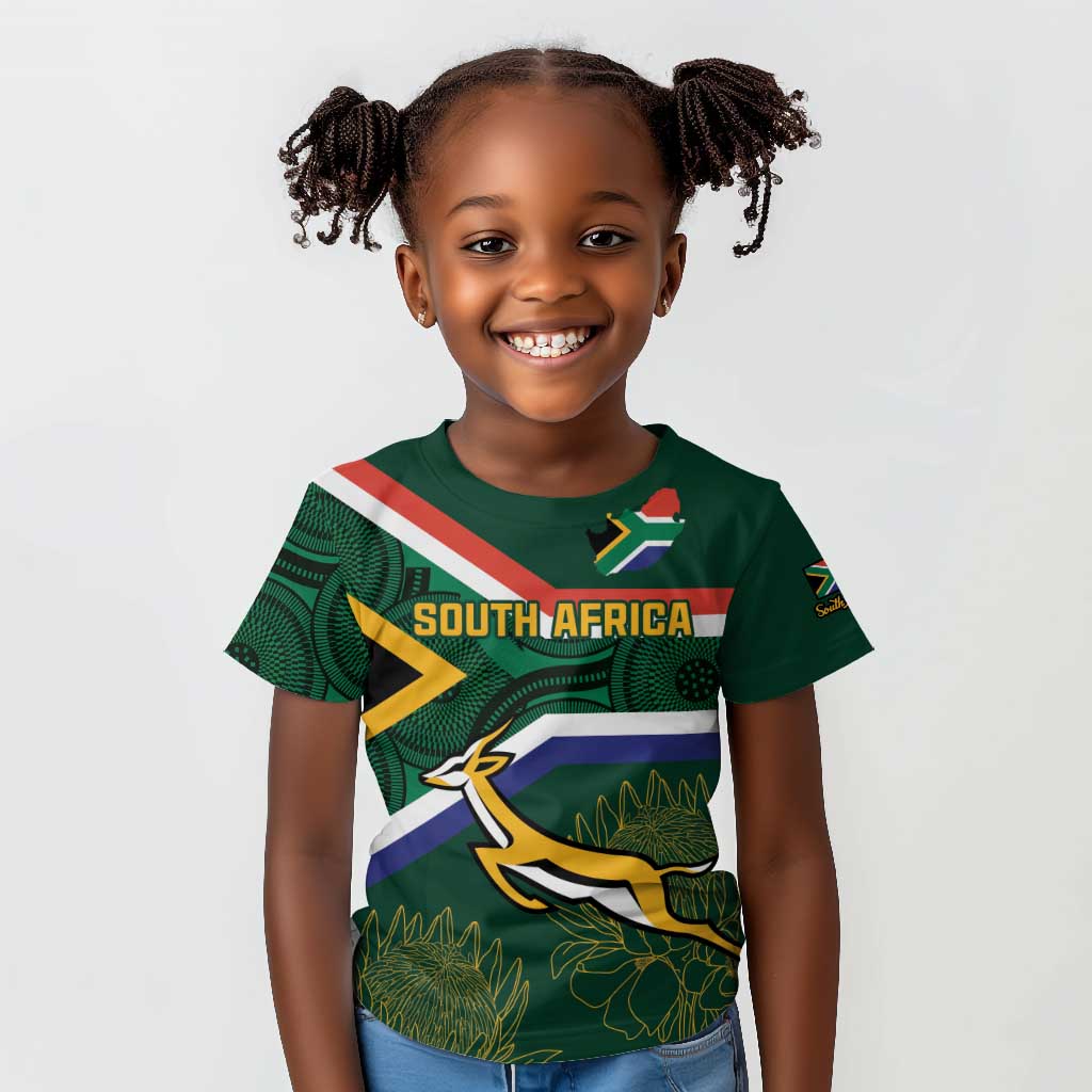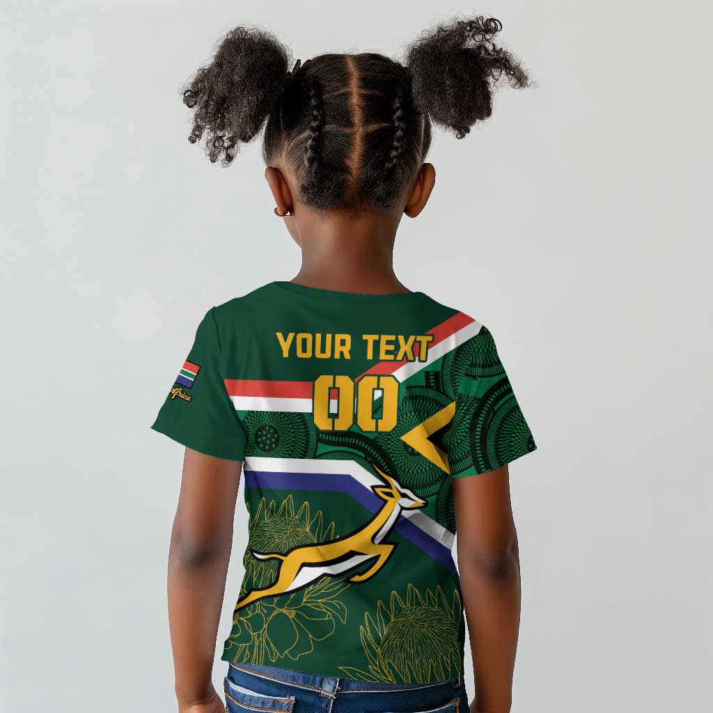 Custom South Africa Rugby Kid T shirt Springboks Mascot African Pattern