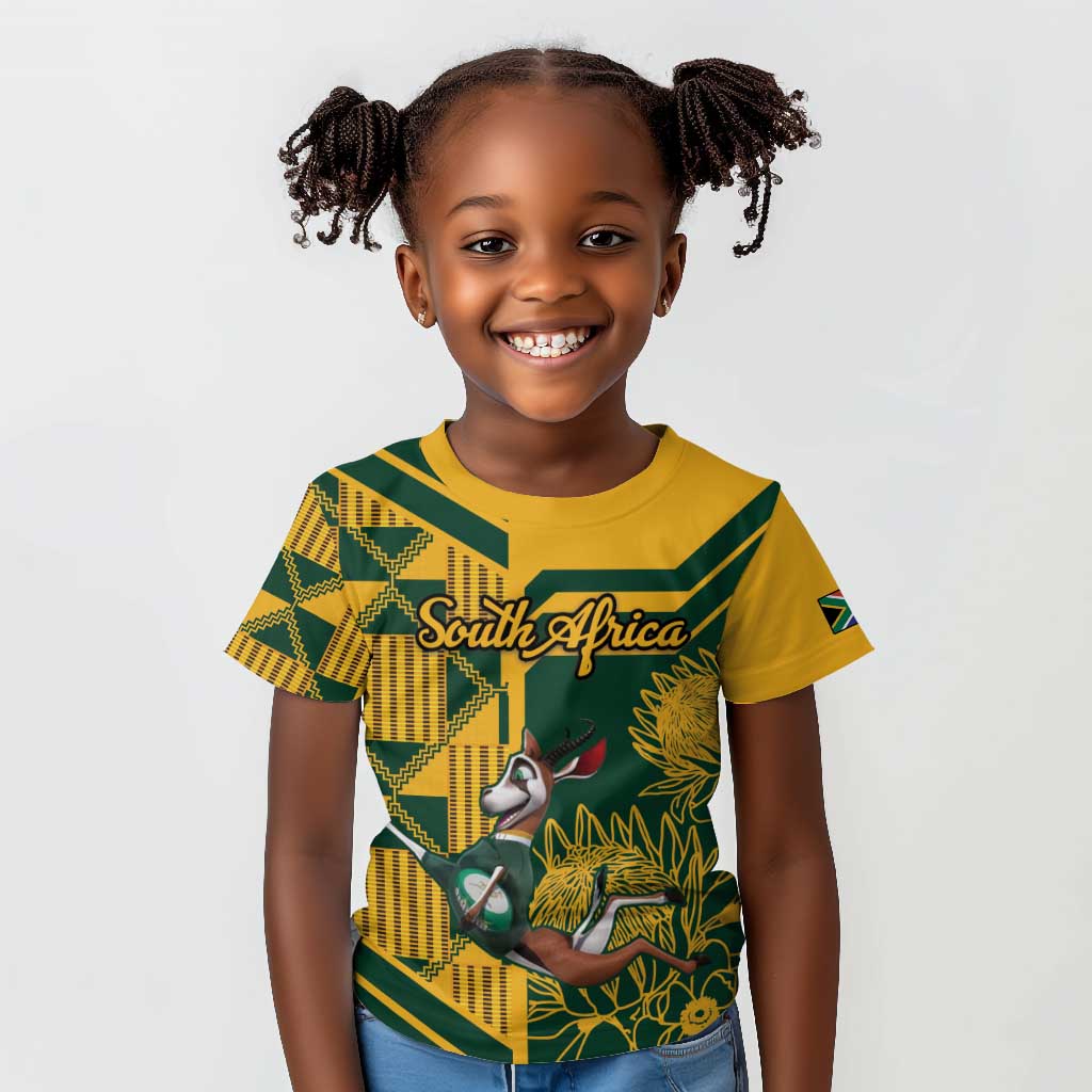 Custom South Africa Rugby Kid T shirt Springboks With Protea Cynaroides
