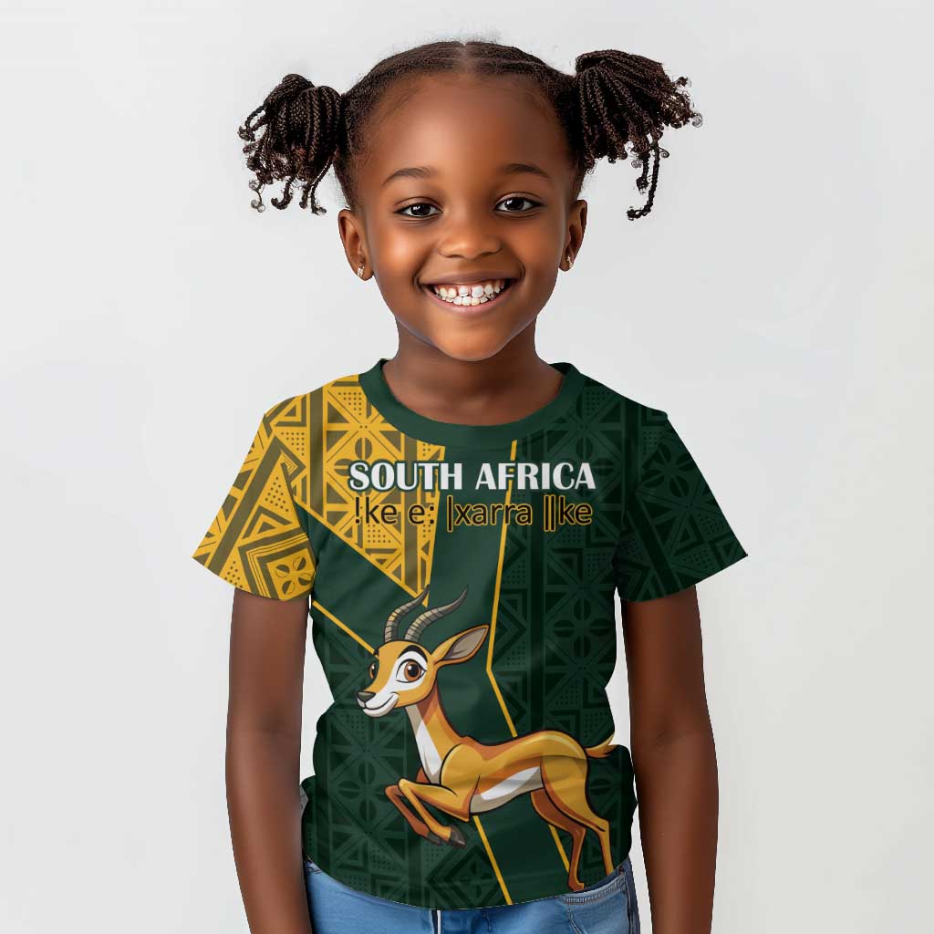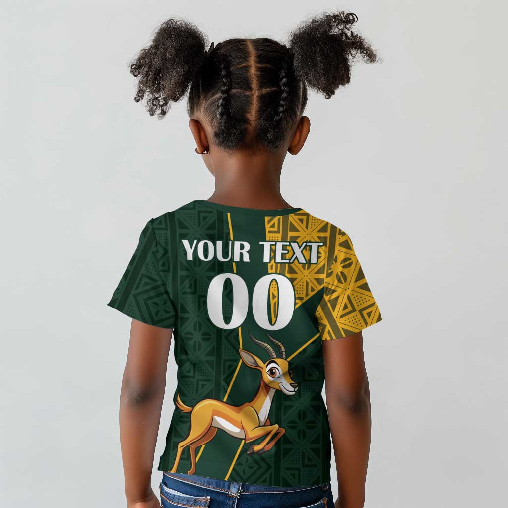 Custom South Africa Springbok Jumping Kid T shirt With Kente Patterns