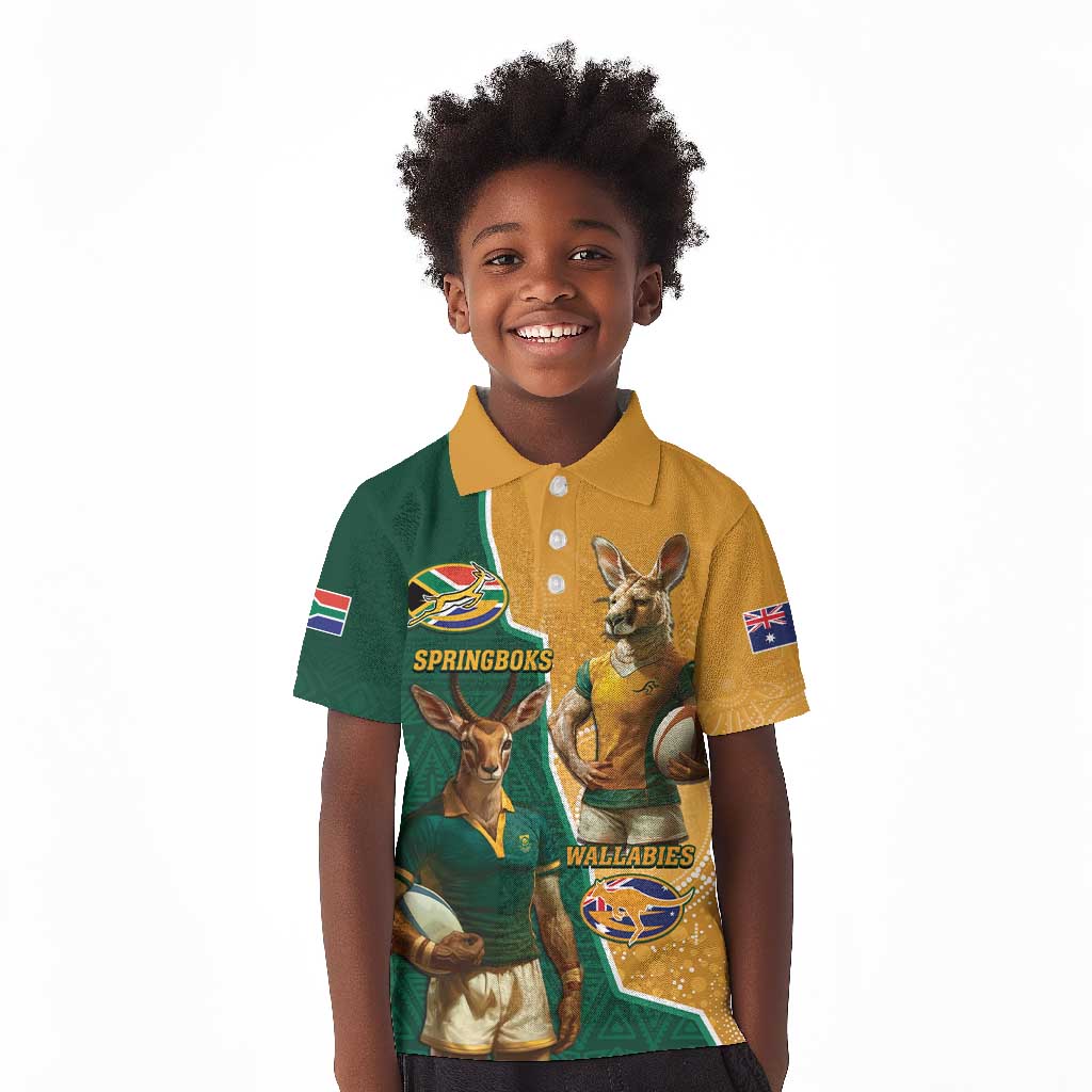 Personalised South Africa And Australia Rugby Kid Polo Shirt 2024 Springboks Wallabies Mascots Together