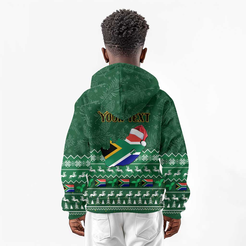 Personalised South Africa Christmas Kid Hoodie Cool Santa Claus With South African Map