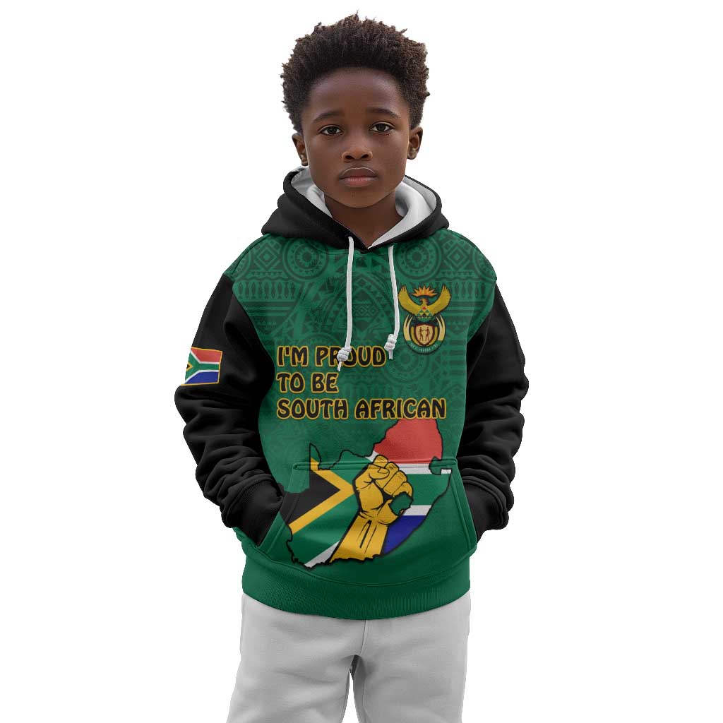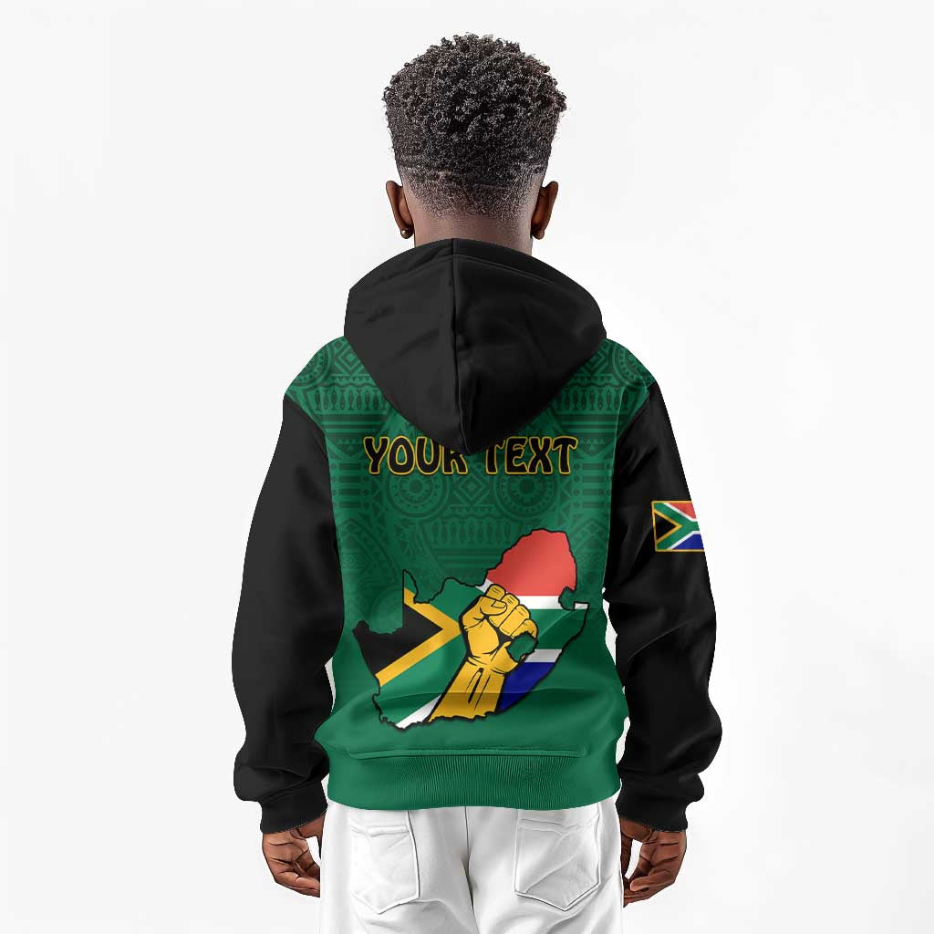Personalised South Africa Kid Hoodie African Pattern Happy Freedom Day Green Version