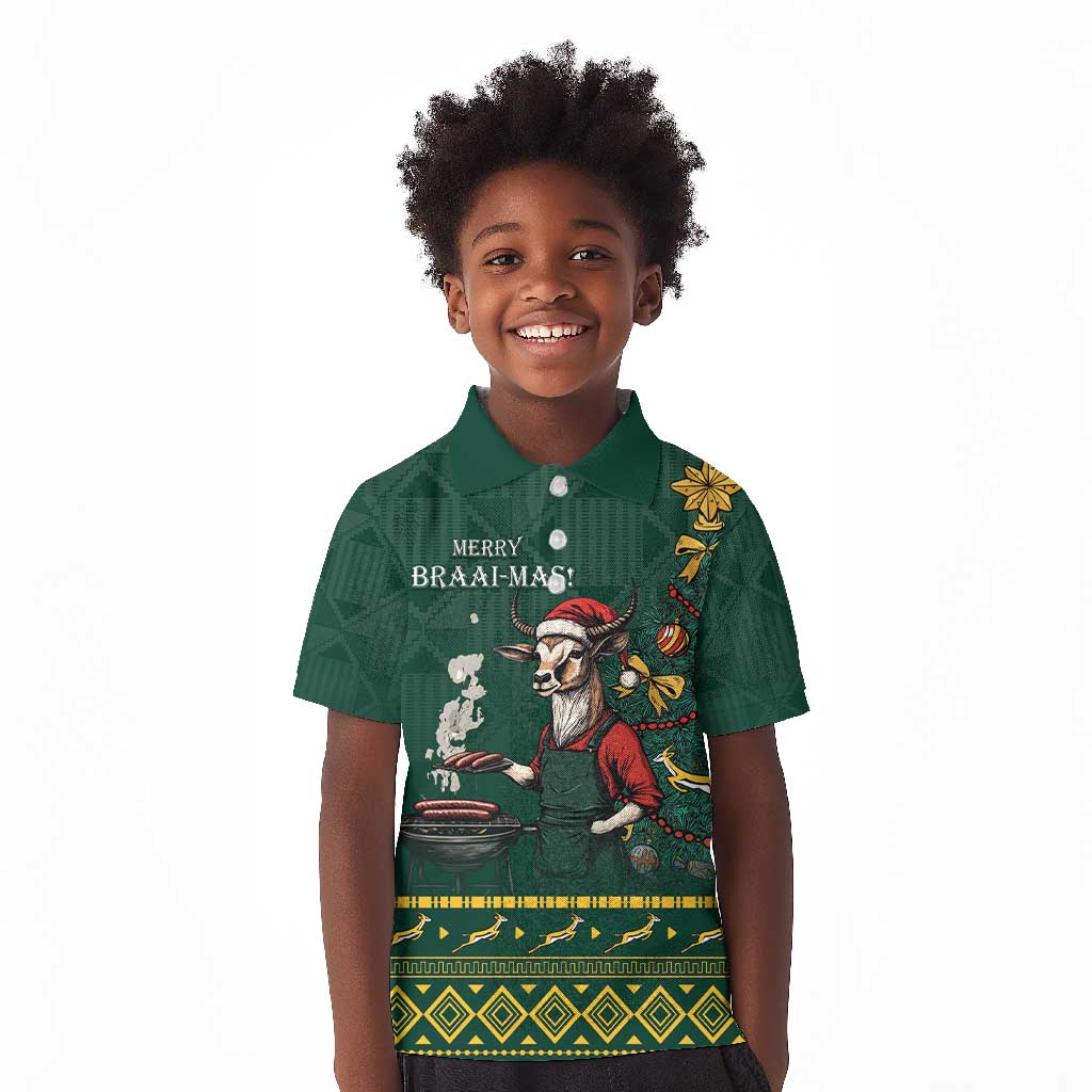 Personalised South Africa Kid Polo Shirt Springbok Christmas Braai