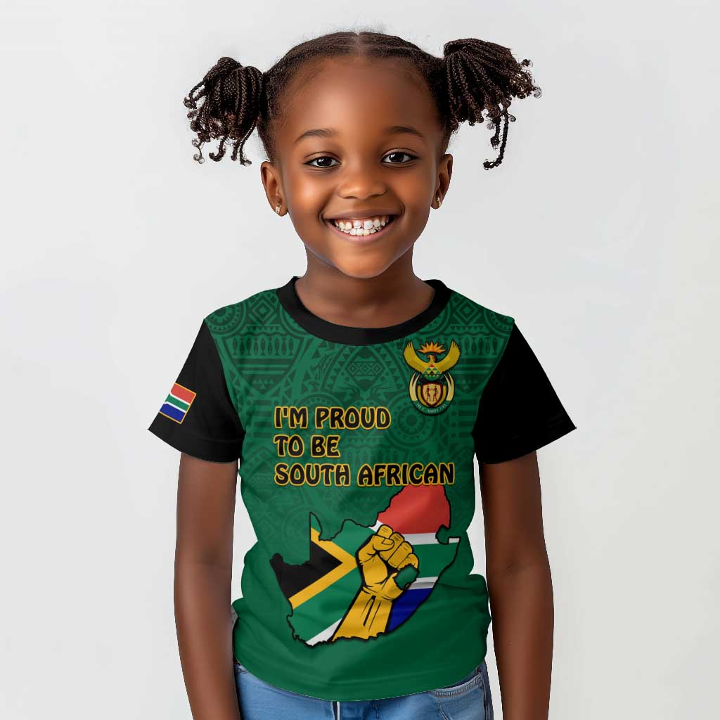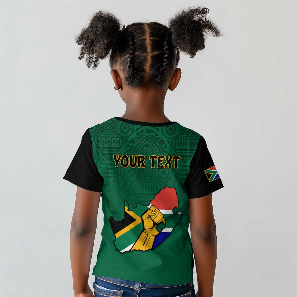 Personalised South Africa Kid T shirt African Pattern Happy Freedom Day Green Version