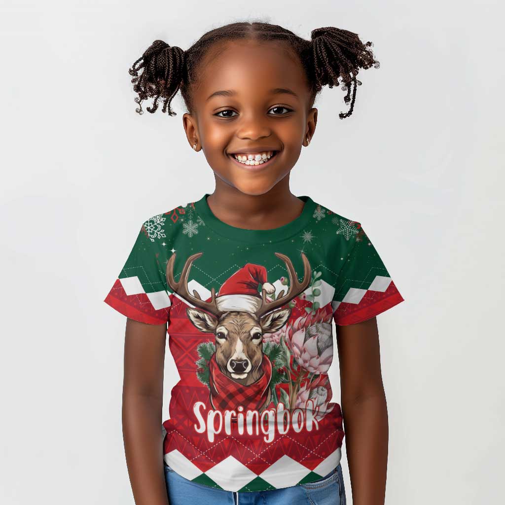 Personalized South Africa Merry Christmas Kid T shirt Springbok With King Protea
