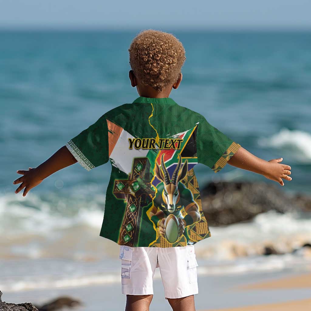 Personalized South Africa Versus Ireland Rugby Kid Hawaiian Shirt - Springbok Mascot, Celtic Cross Design