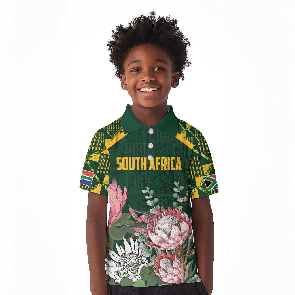 Personalized South Africa With Afro King Protea Kid Polo Shirt Kente Patterns