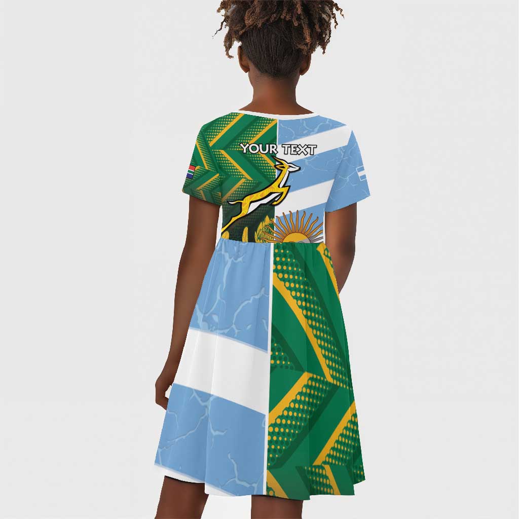 South Africa and Argentina Rugby Personalised Kid Short Sleeve Dress Sporty Style