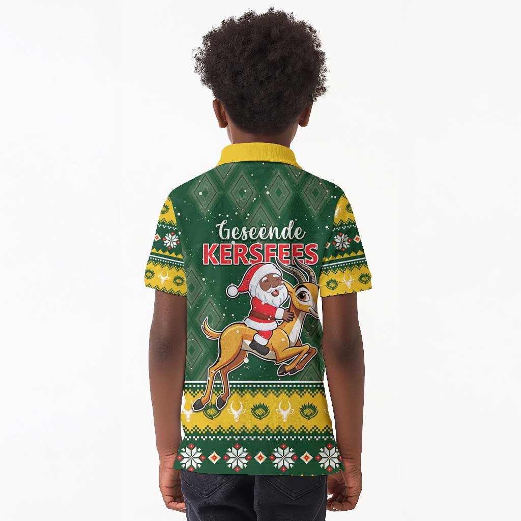 South Africa Christmas Kid Polo Shirt Funny Santa Riding Springbok