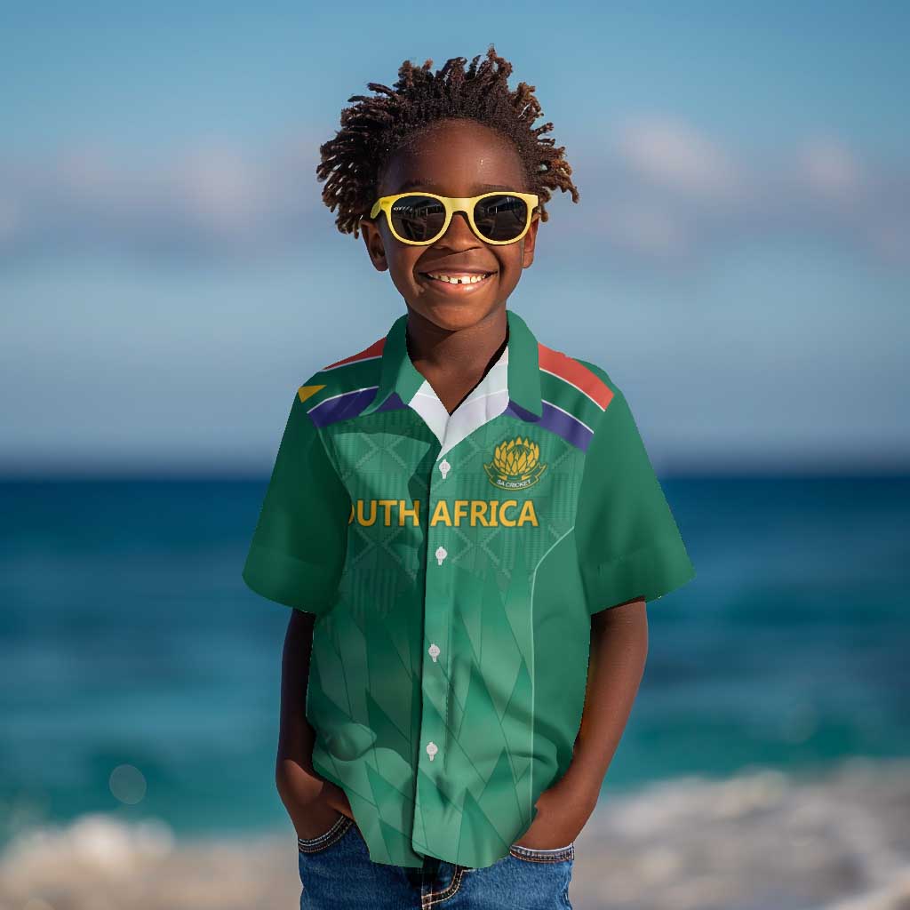 South Africa Cricket Custom Kid Hawaiian Shirt African King Proteas Green