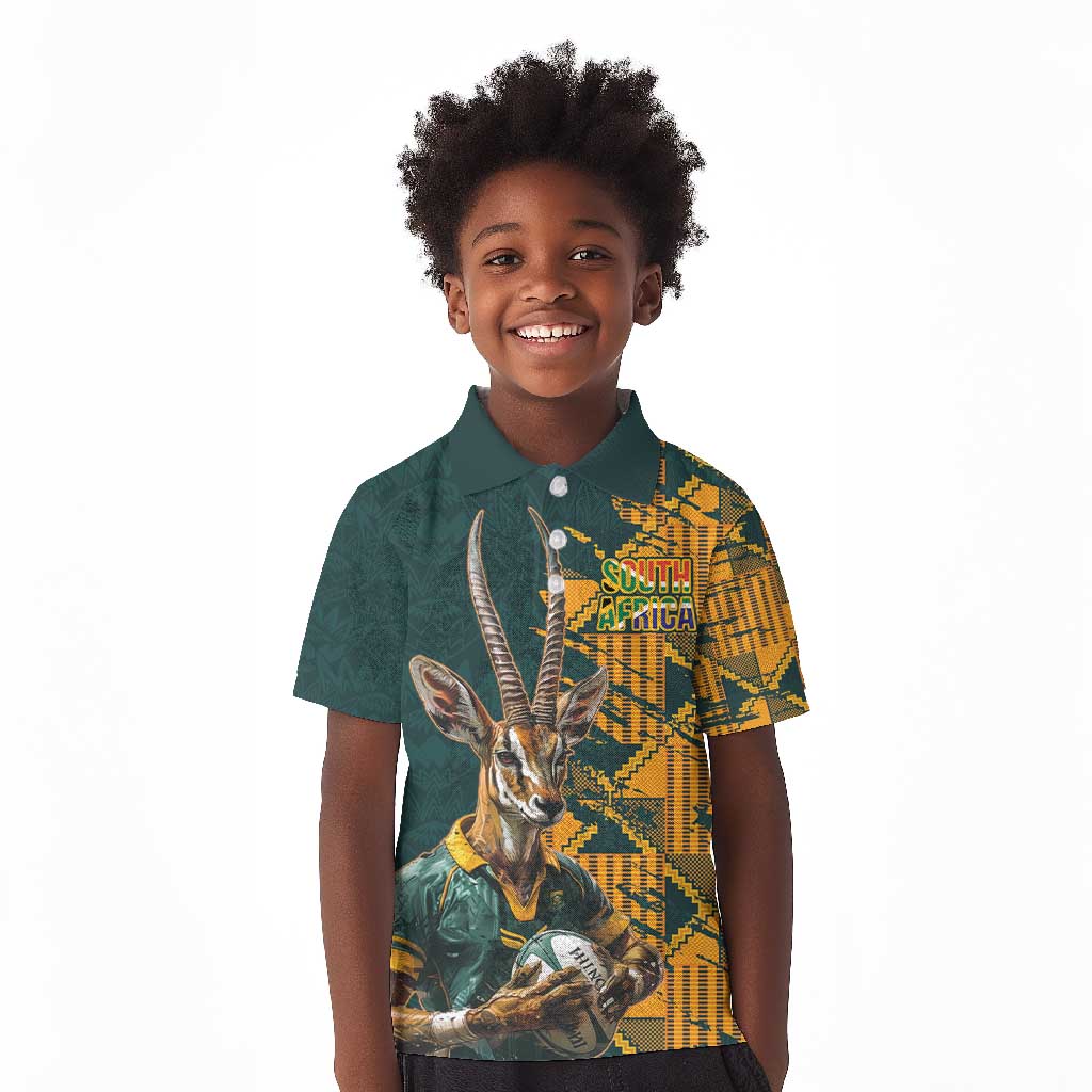 South Africa Rugby Custom Kid Polo Shirt Afro Springboks Mascot Sporty Version