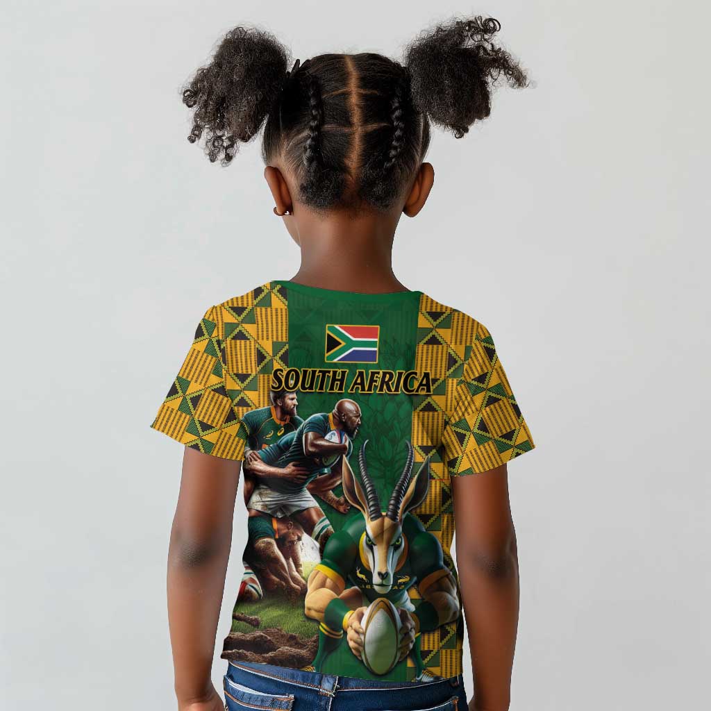 South Africa Rugby Kid T shirt - Springbok Mascot, Players Fighting for Victory