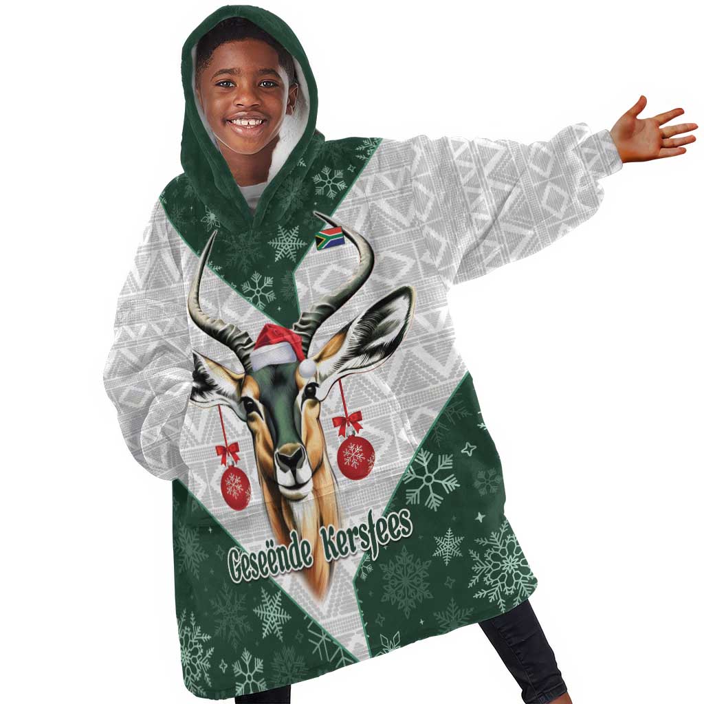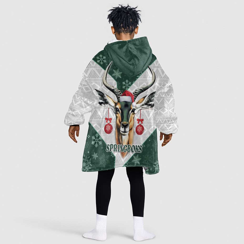 South Africa Springboks Christmas Kid Wearable Blanket Hoodie Bokke Santa - Geseende Kersfees