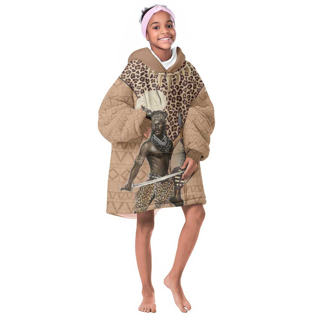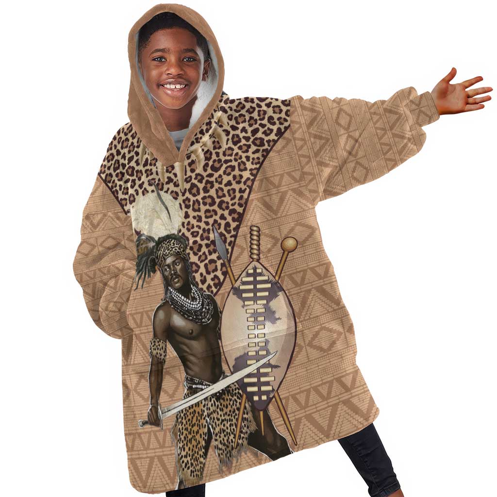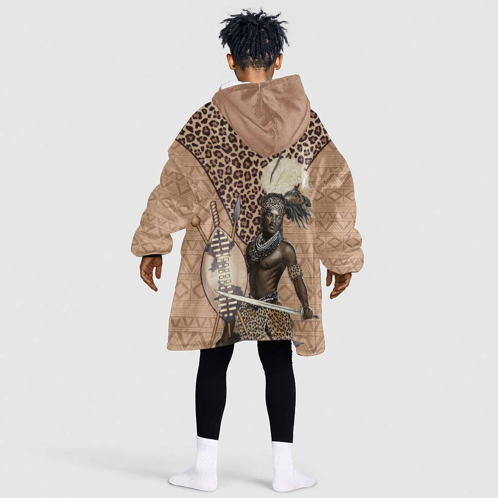 South Africa Zulu People Kid Wearable Blanket Hoodie Zulu Warrior - African Pattern
