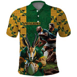 South Africa Rugby Polo Shirt - Springbok Mascot, Players Fighting for Victory