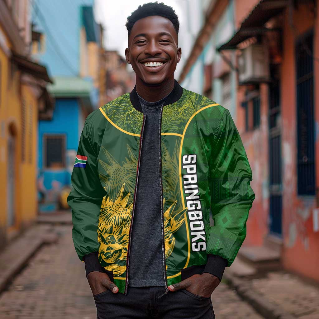 Custom South Africa Rugby Bomber Jacket Go Champions Springboks Flower
