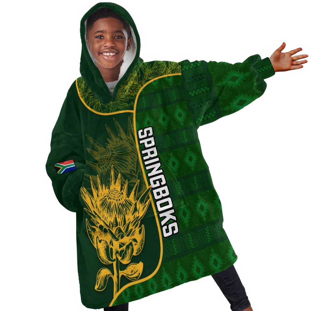 Custom South Africa Rugby Kid Wearable Blanket Hoodie Go Champions Springboks Flower