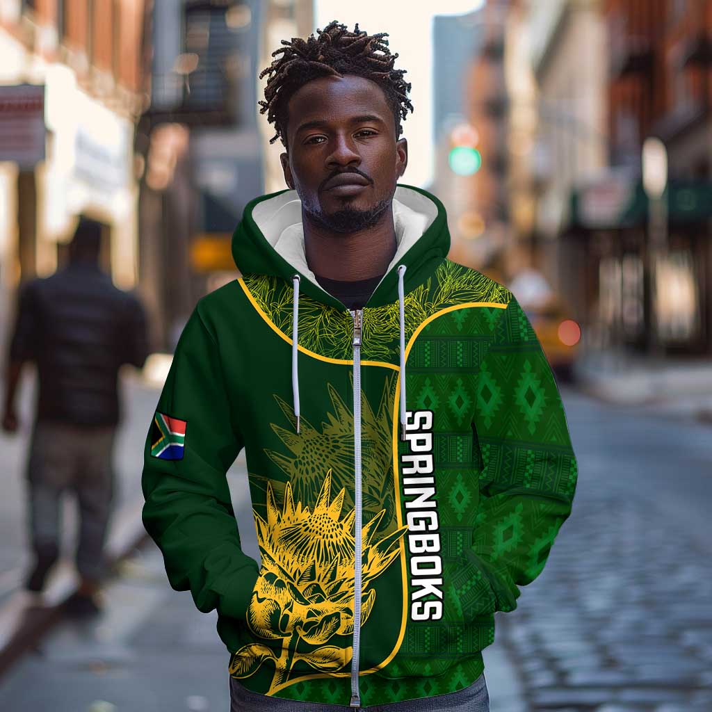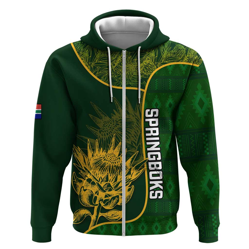 Custom South Africa Rugby Zip Hoodie Go Champions Springboks Flower