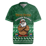 Personalised South Africa Christmas Rugby Jersey Cool Santa Claus With South African Map