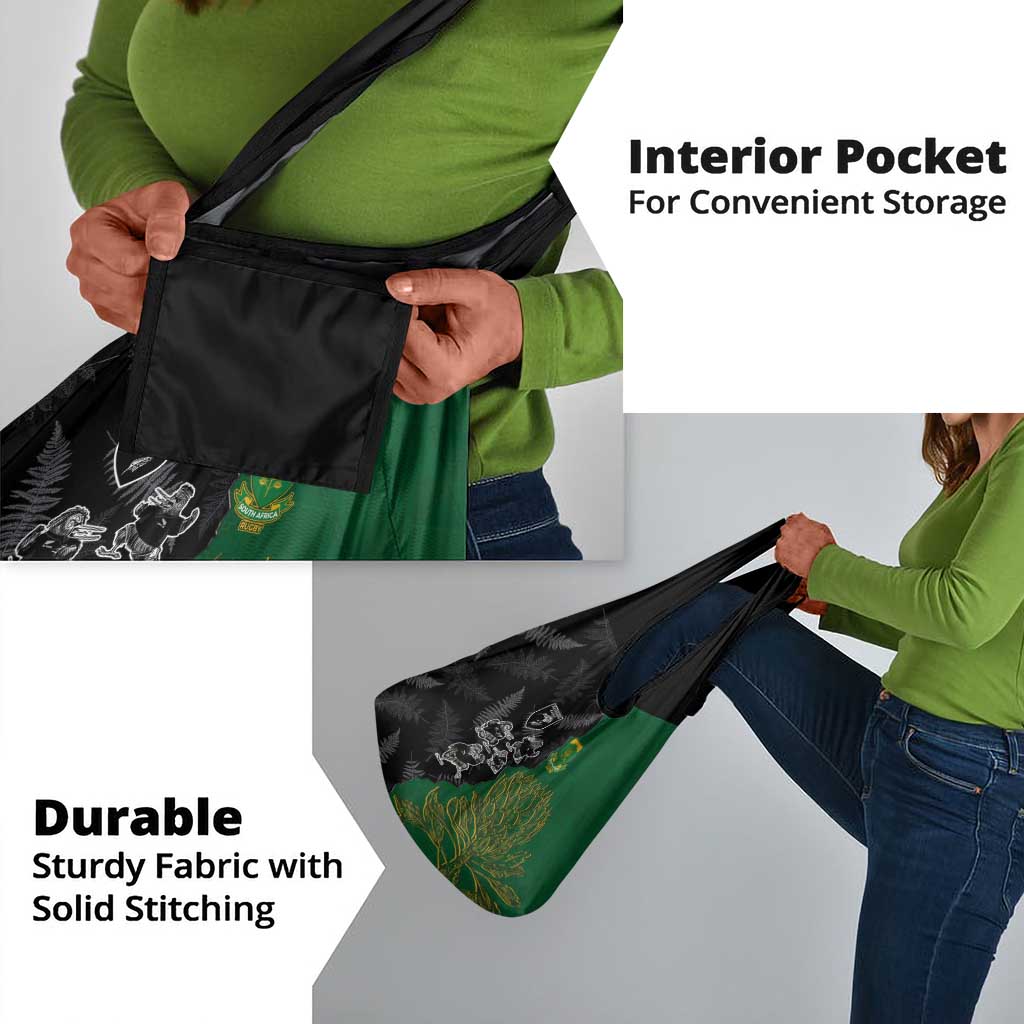 Aotearoa South Africa Rugby Freedom Cup Grocery Bag Kiwi Warriors Haka with King Protea Symbol
