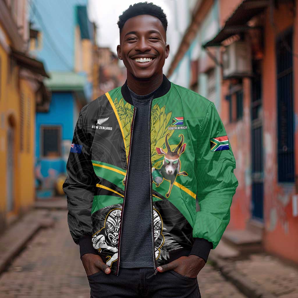 Custom New Zealand And South Africa Rugby Bomber Jacket 2023 Springboks Combine All Black Silver Fern