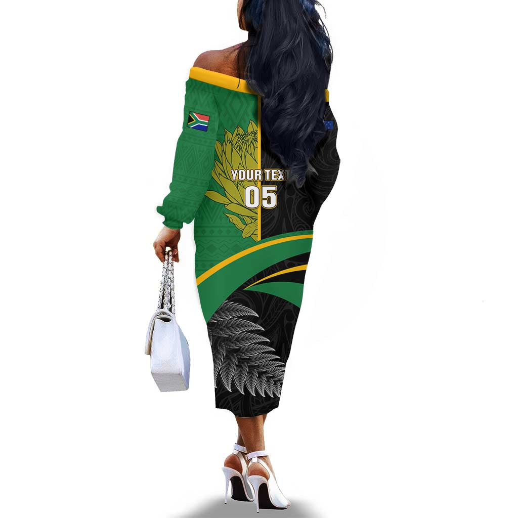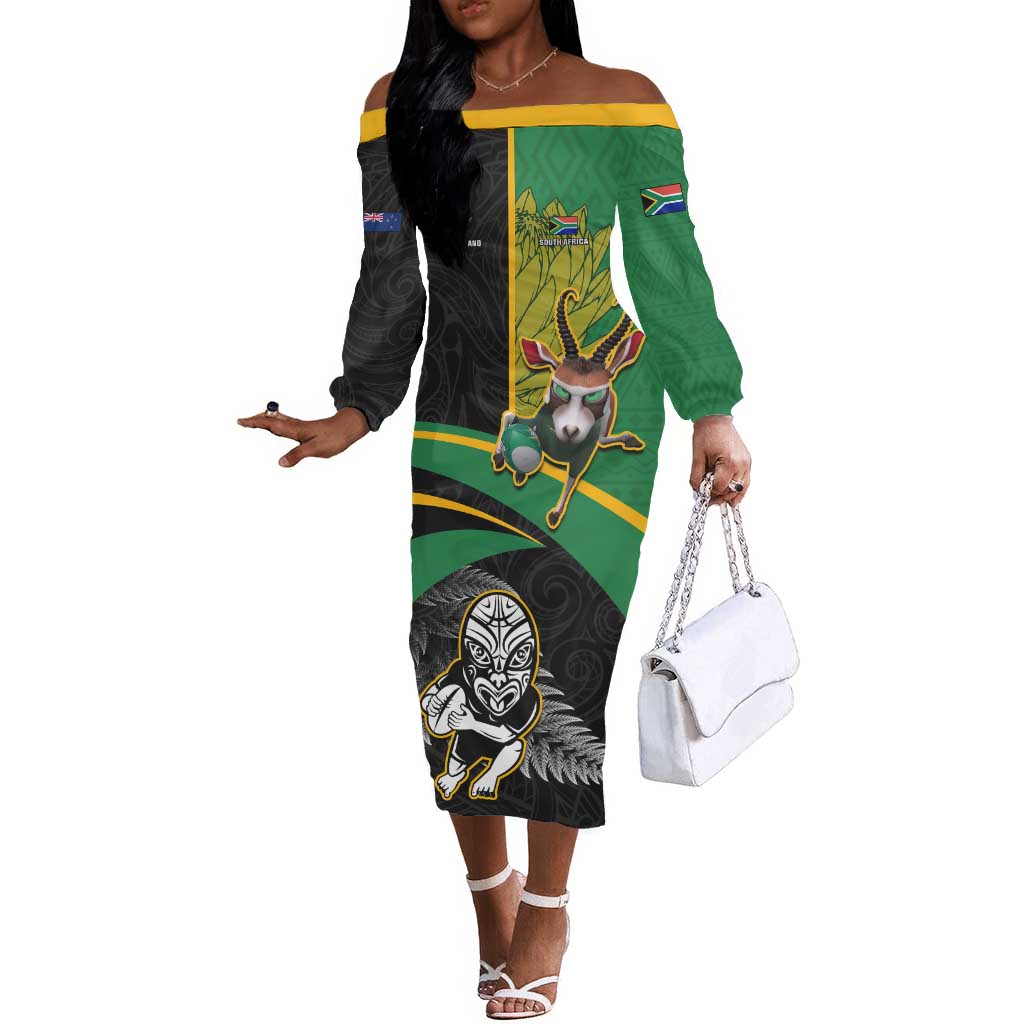 Custom New Zealand And South Africa Rugby Off The Shoulder Long Sleeve Dress 2023 Springboks Combine All Black Silver Fern