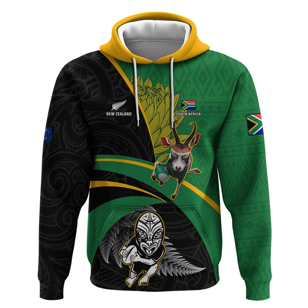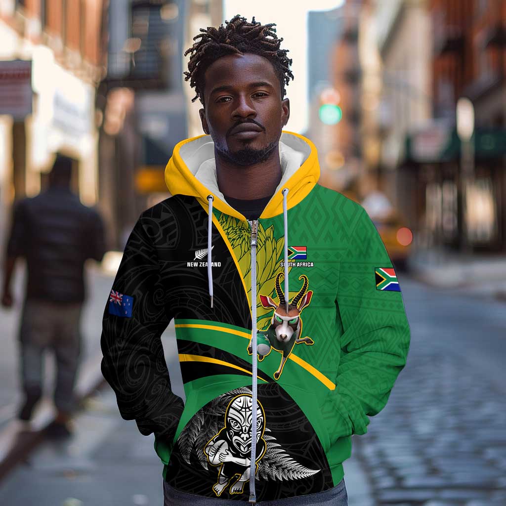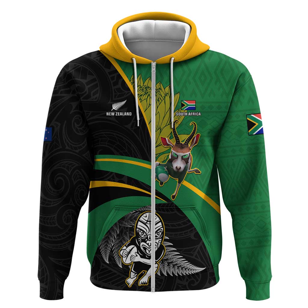 Custom New Zealand And South Africa Rugby Zip Hoodie 2023 Springboks Combine All Black Silver Fern LT05