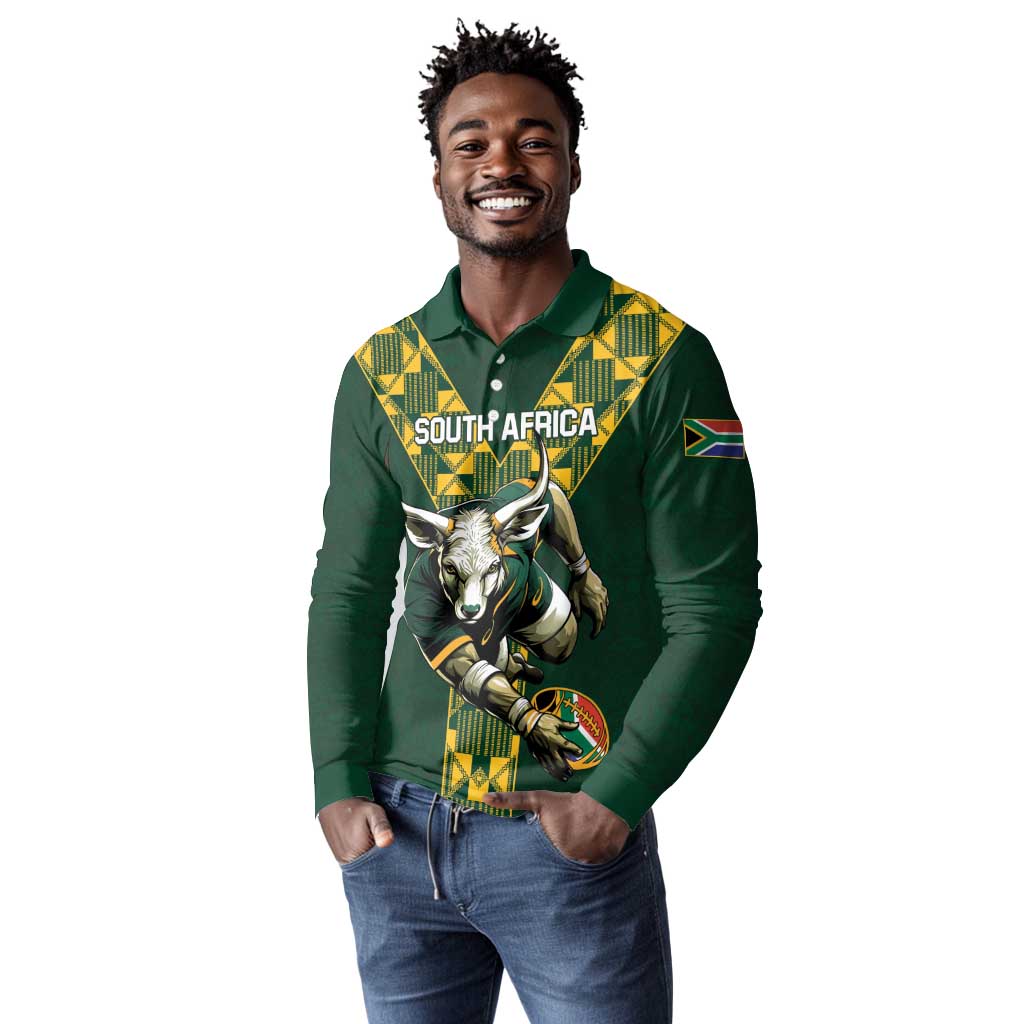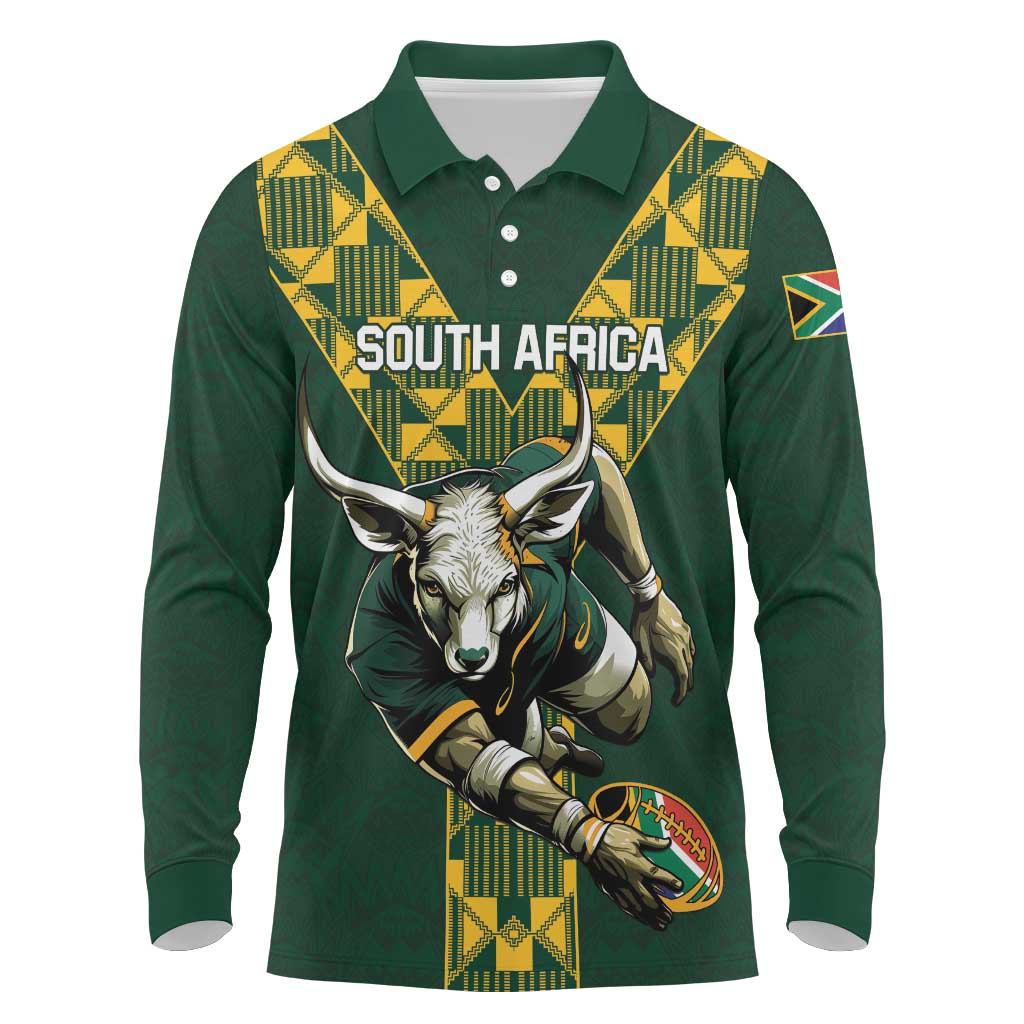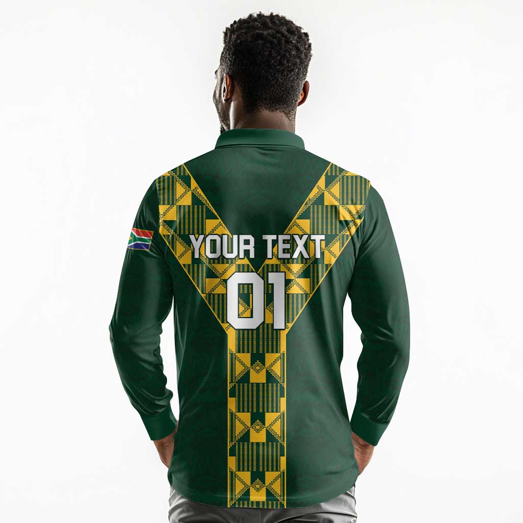 Custom South Africa 2024 Rugby Long Sleeve Polo Shirt Go Springboks Protea Pattern