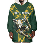 Custom South Africa 2024 Rugby Wearable Blanket Hoodie Go Springboks Protea Pattern