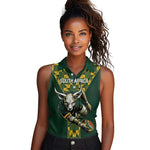 Custom South Africa 2024 Rugby Women Sleeveless Polo Shirt Go Springboks Protea Pattern