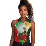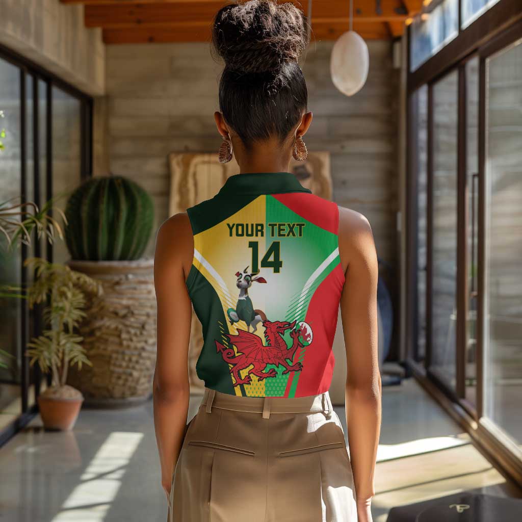 Custom South Africa And Wales Rugby Women Sleeveless Polo Shirt Springboks Welsh Mascots Dynamic Version