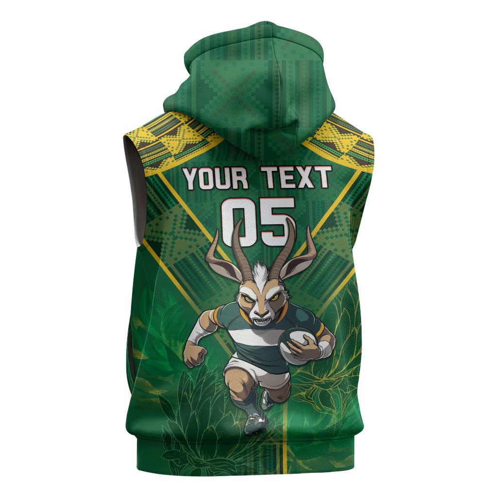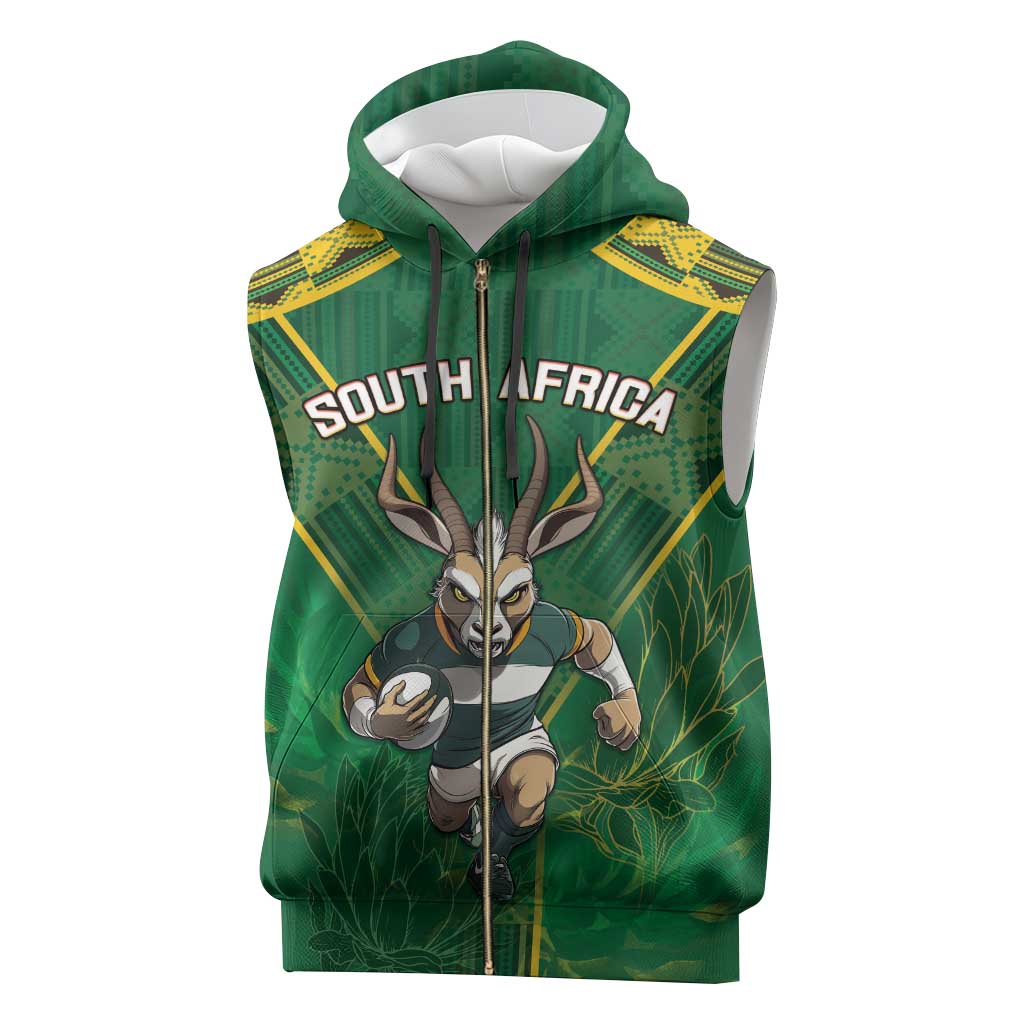 Custom South Africa Rugby 2024 Sleeveless Zip Hoodie Go Bokke African Pattern