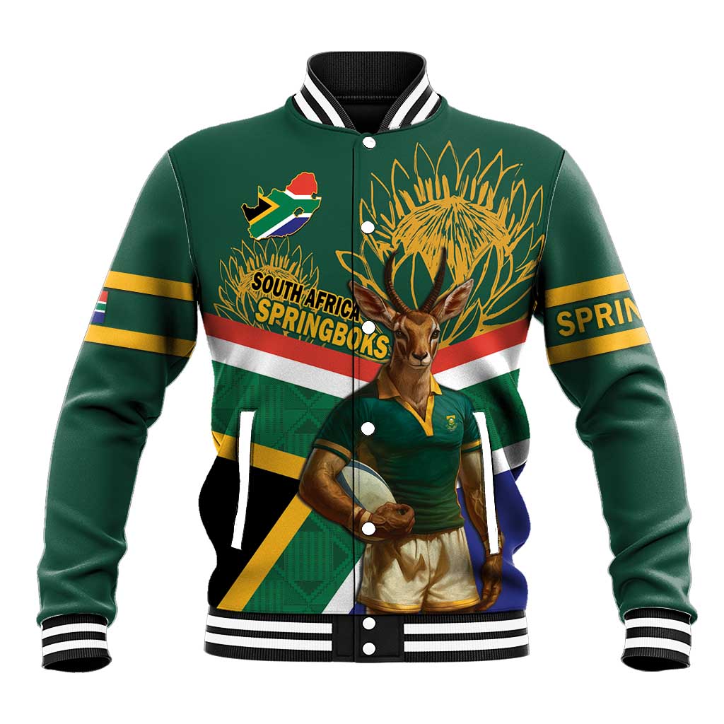 Custom South Africa Rugby Baseball Jacket 2024 Go Springboks Mascot African Pattern LT14