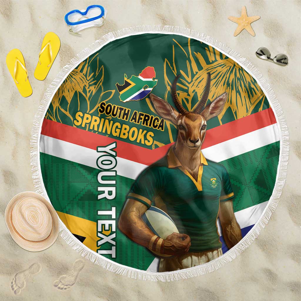 Custom South Africa Rugby Beach Blanket 2024 Go Springboks Mascot African Pattern