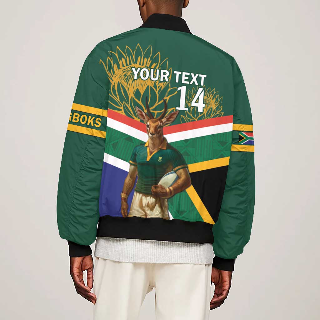Custom South Africa Rugby Bomber Jacket 2024 Go Springboks Mascot African Pattern