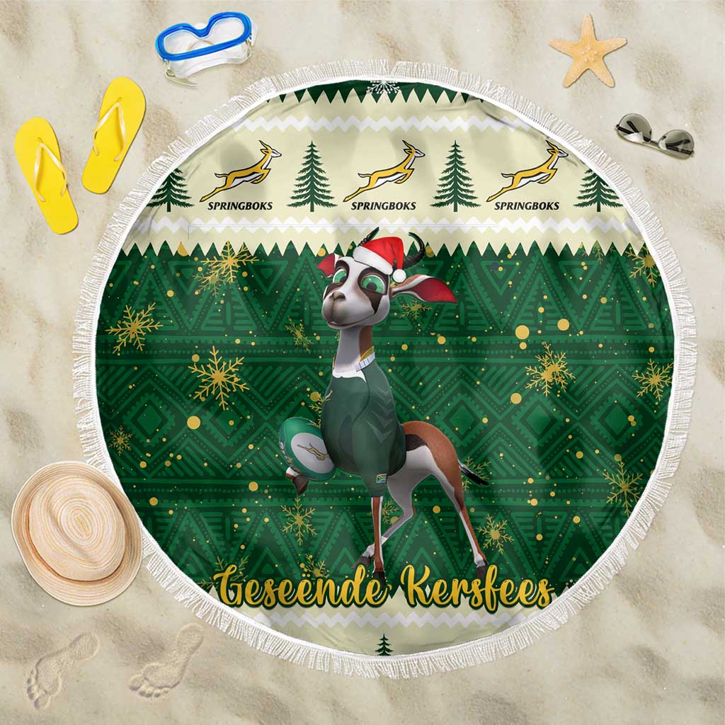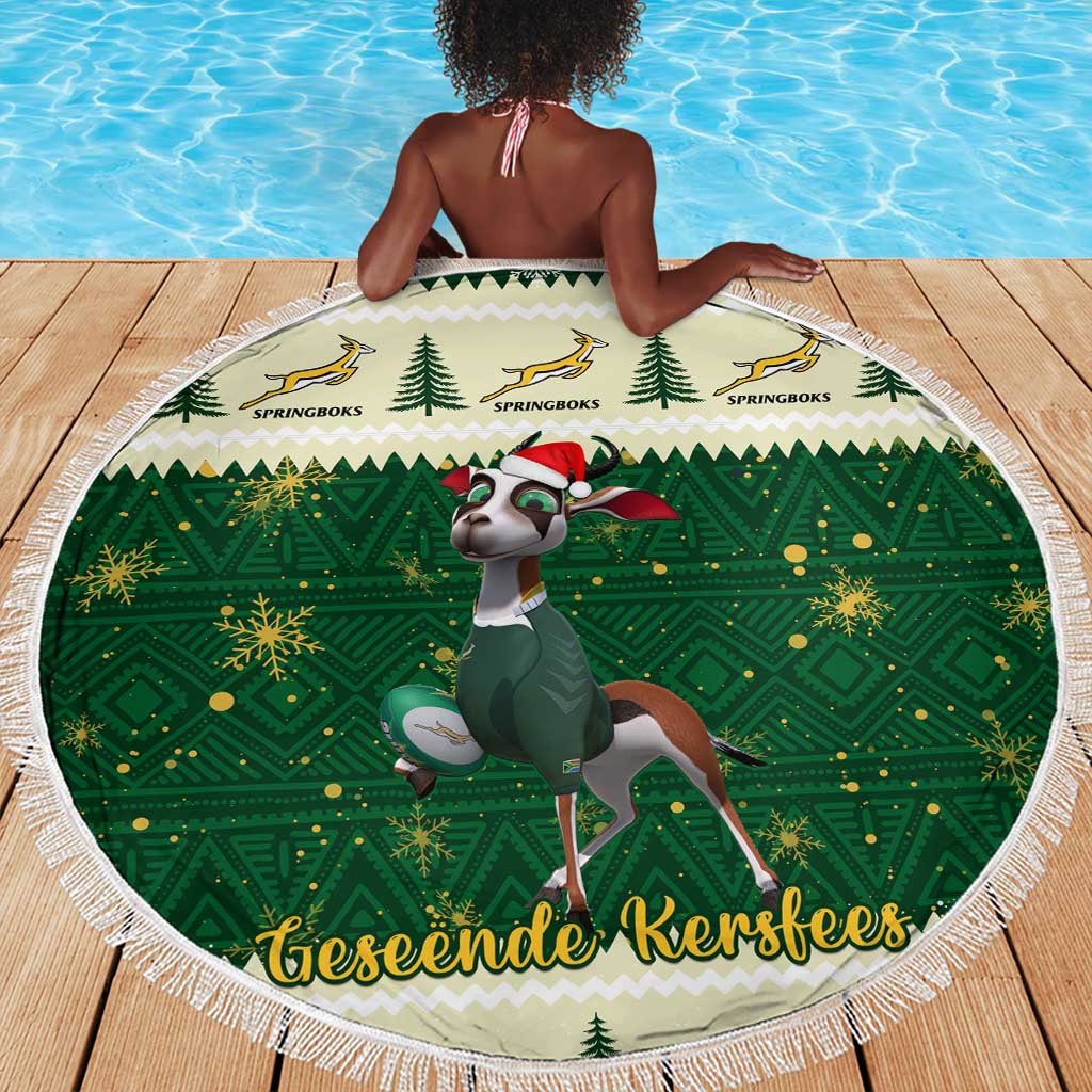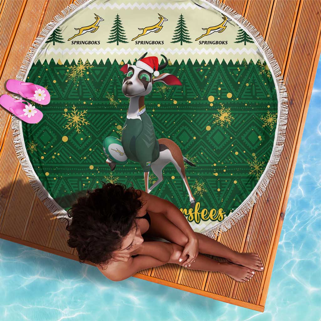 Custom South Africa Rugby Christmas Beach Blanket Geseende Kersfees Springboks African Pattern