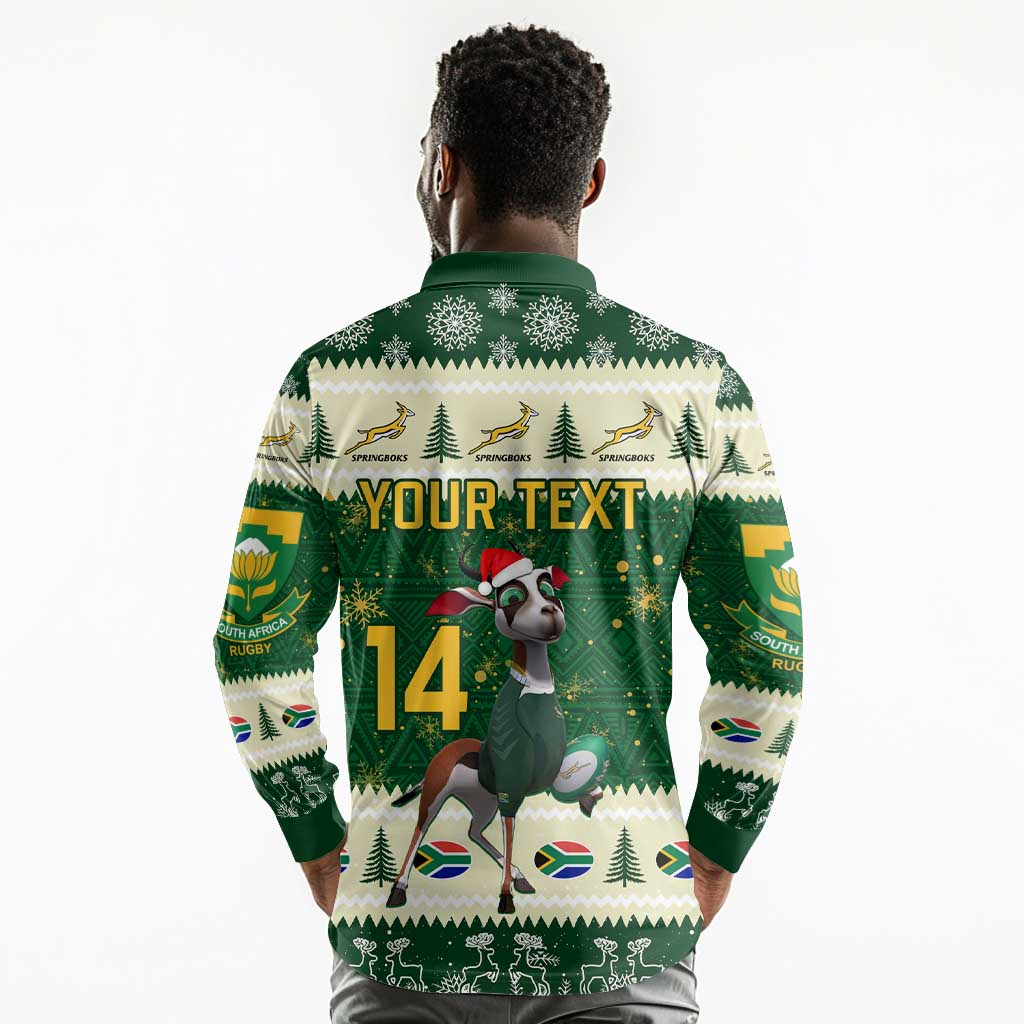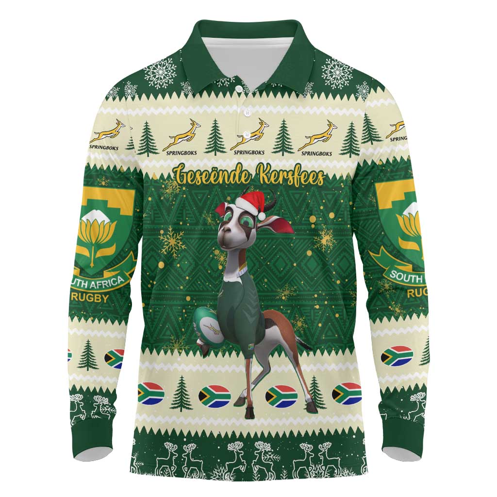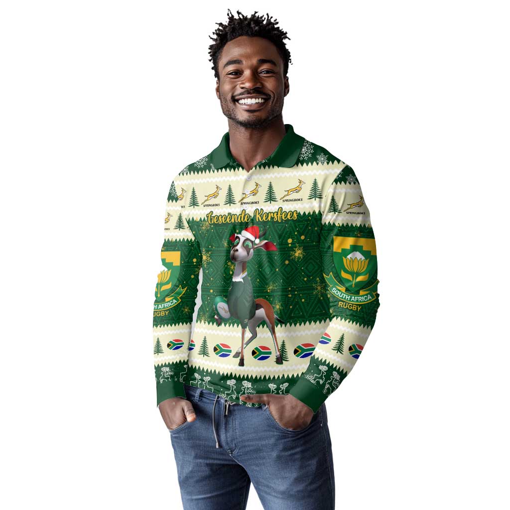 Custom South Africa Rugby Christmas Long Sleeve Polo Shirt Geseende Kersfees Springboks African Pattern