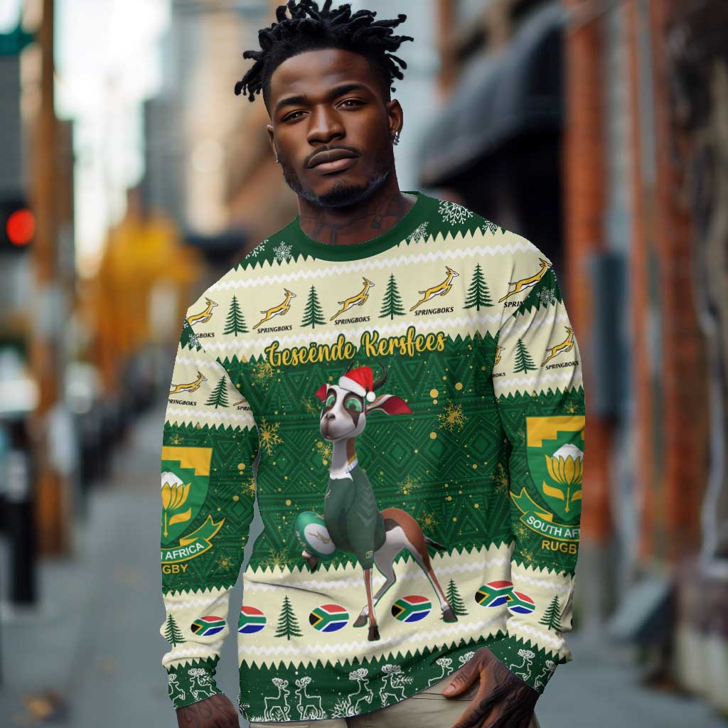 Custom South Africa Rugby Christmas Long Sleeve Shirt Geseende Kersfees Springboks African Pattern