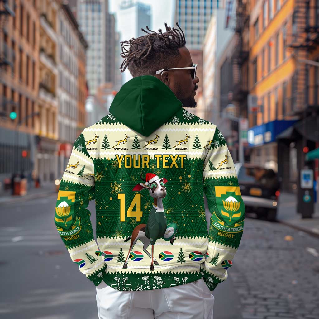 Custom South Africa Rugby Christmas Zip Hoodie Geseende Kersfees Springboks African Pattern