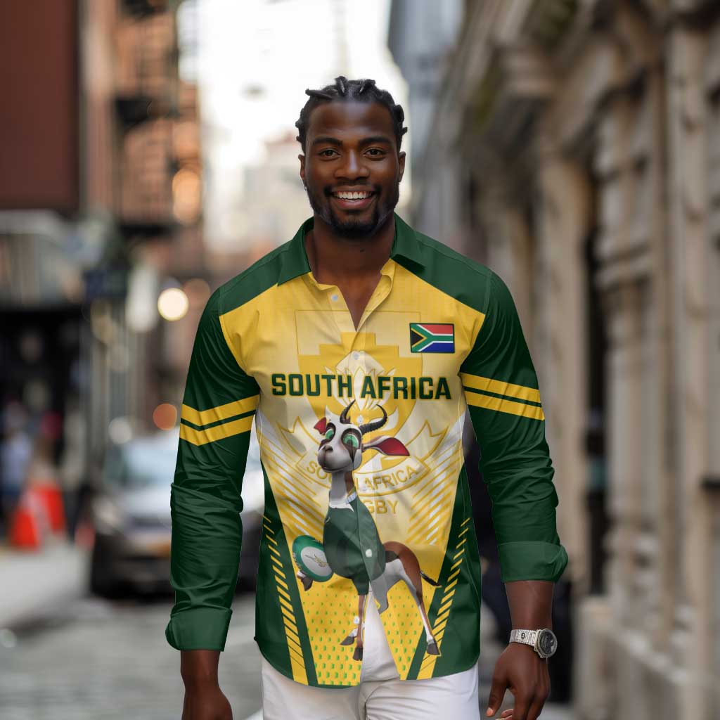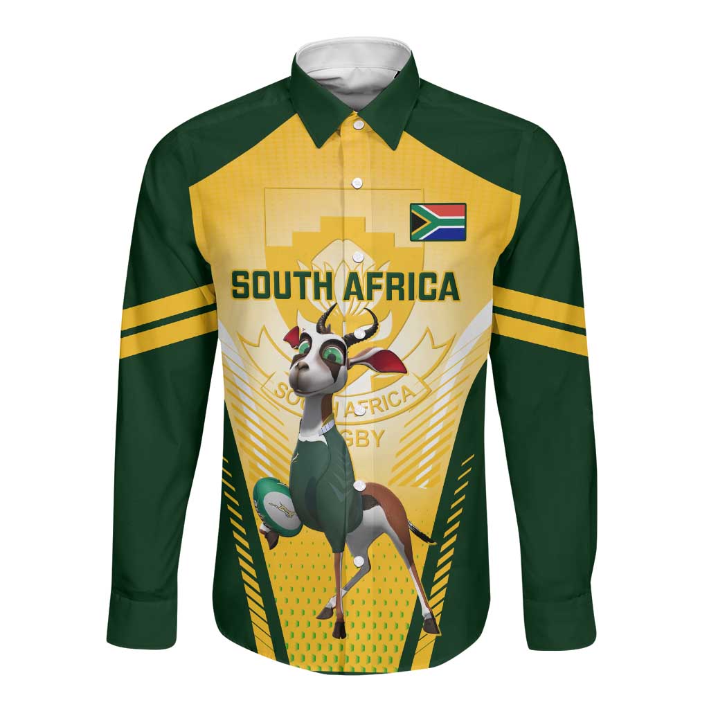 Custom South Africa Rugby Long Sleeve Button Shirt Cute Springboks Mascot LT14