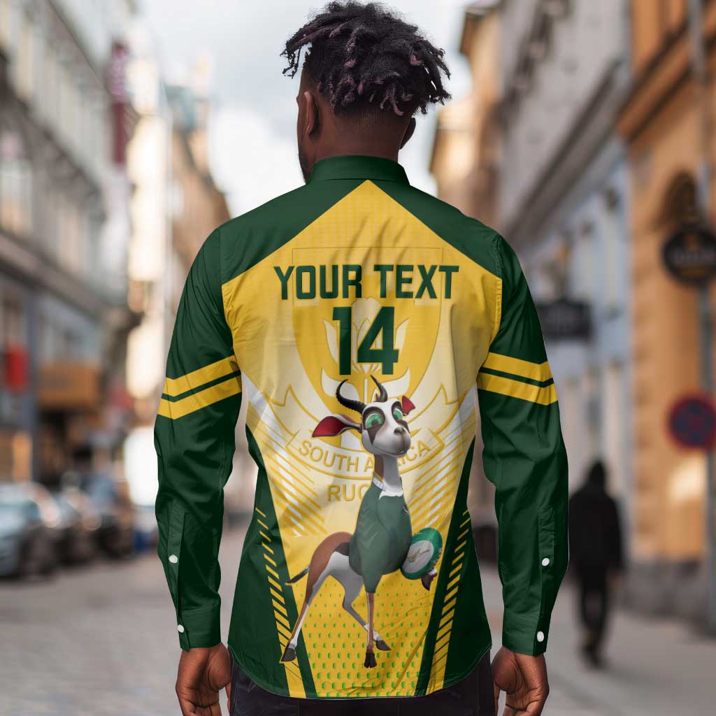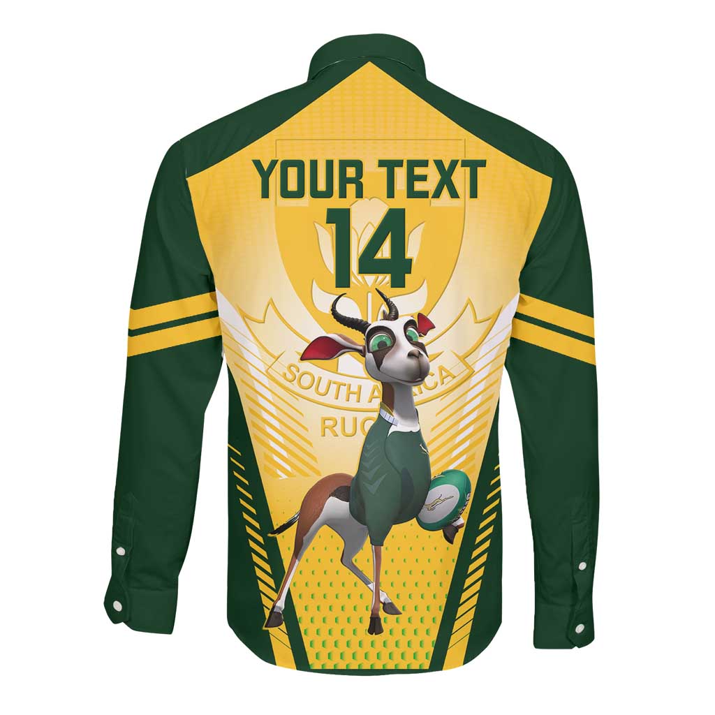 Custom South Africa Rugby Long Sleeve Button Shirt Cute Springboks Mascot