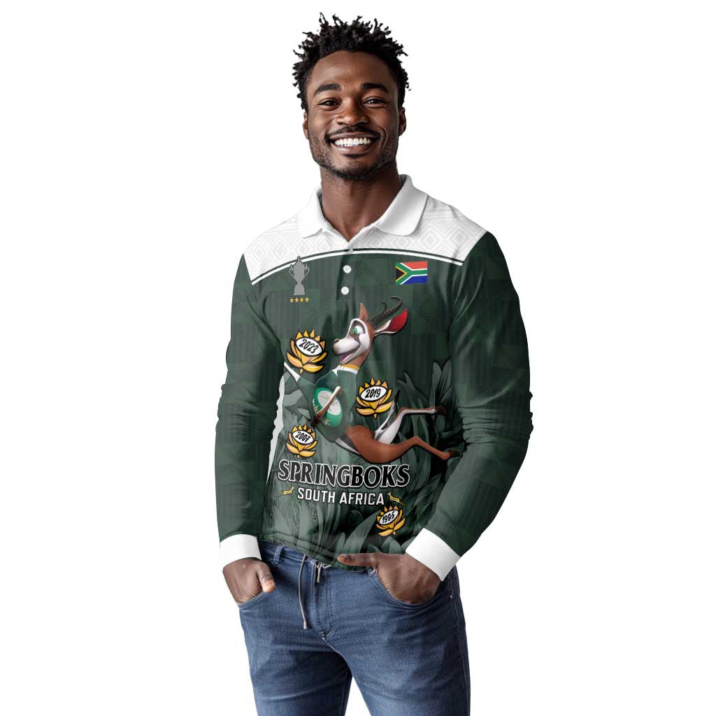 Custom South Africa Rugby Long Sleeve Polo Shirt Springboks 4th Champions World Cup Proud Bokke