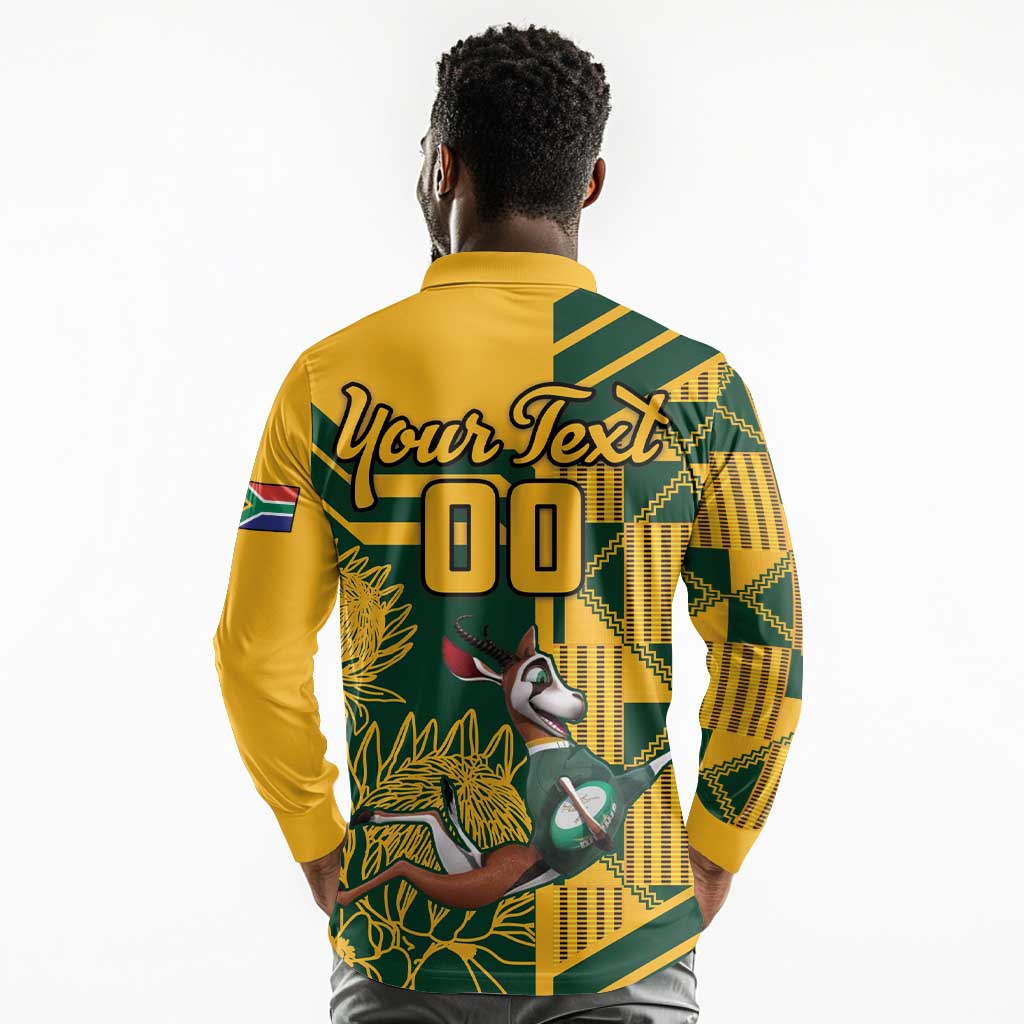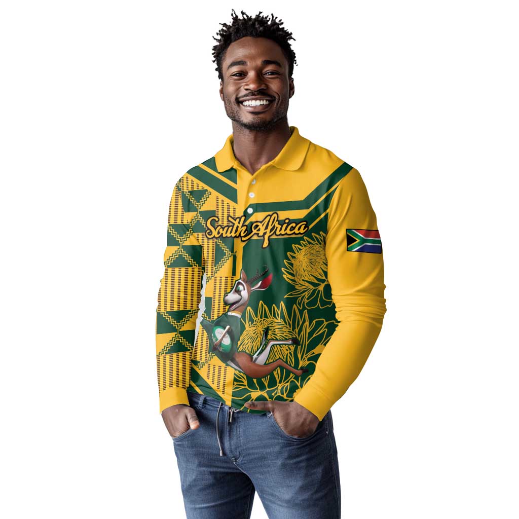 Custom South Africa Rugby Long Sleeve Polo Shirt Springboks With Protea Cynaroides