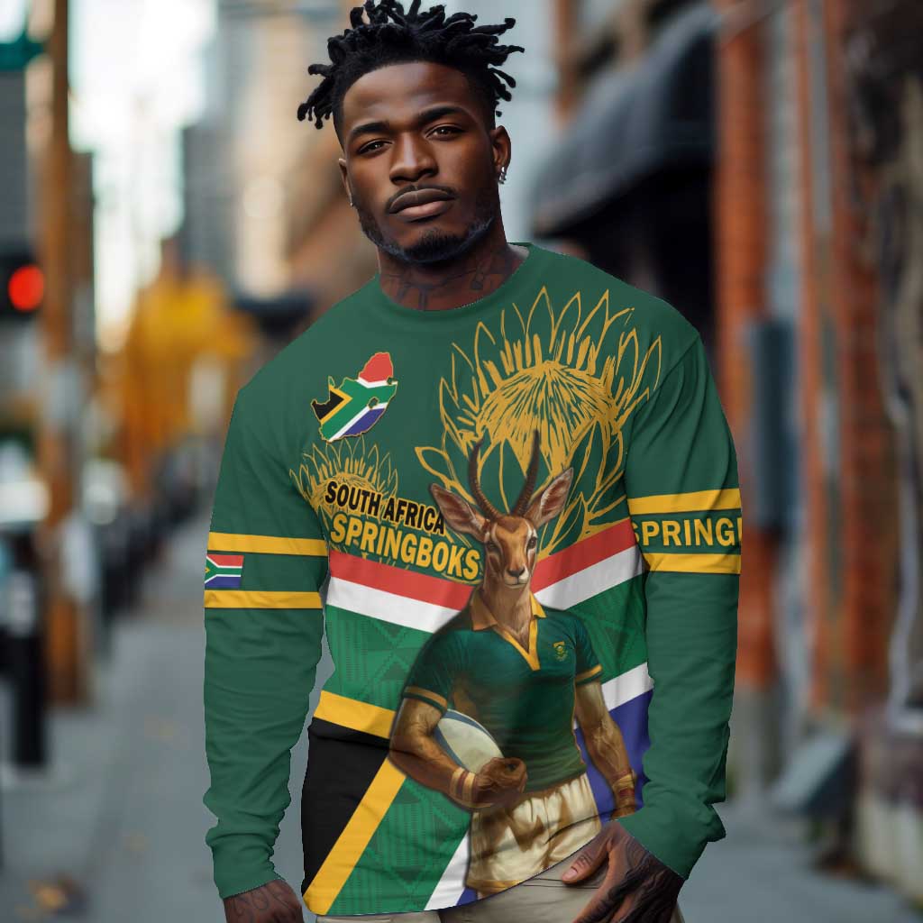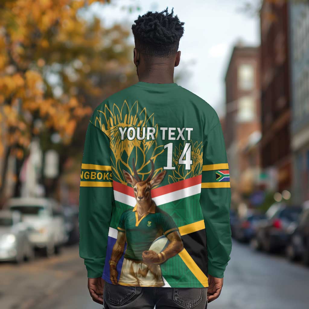 Custom South Africa Rugby Long Sleeve Shirt 2024 Go Springboks Mascot African Pattern LT14