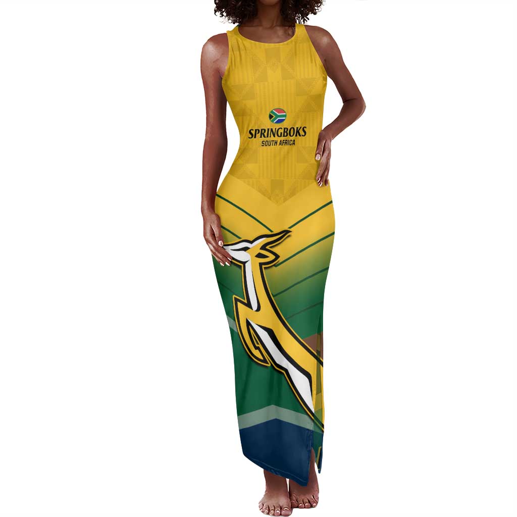 Custom South Africa Rugby Tank Maxi Dress Springboks Go Champions African Pattern