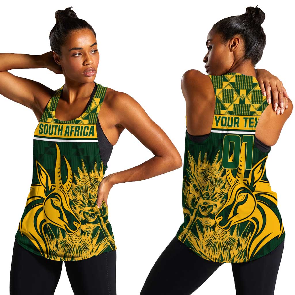 Custom South Africa Rugby Women Racerback Tank - Go Springboks with African Pattern