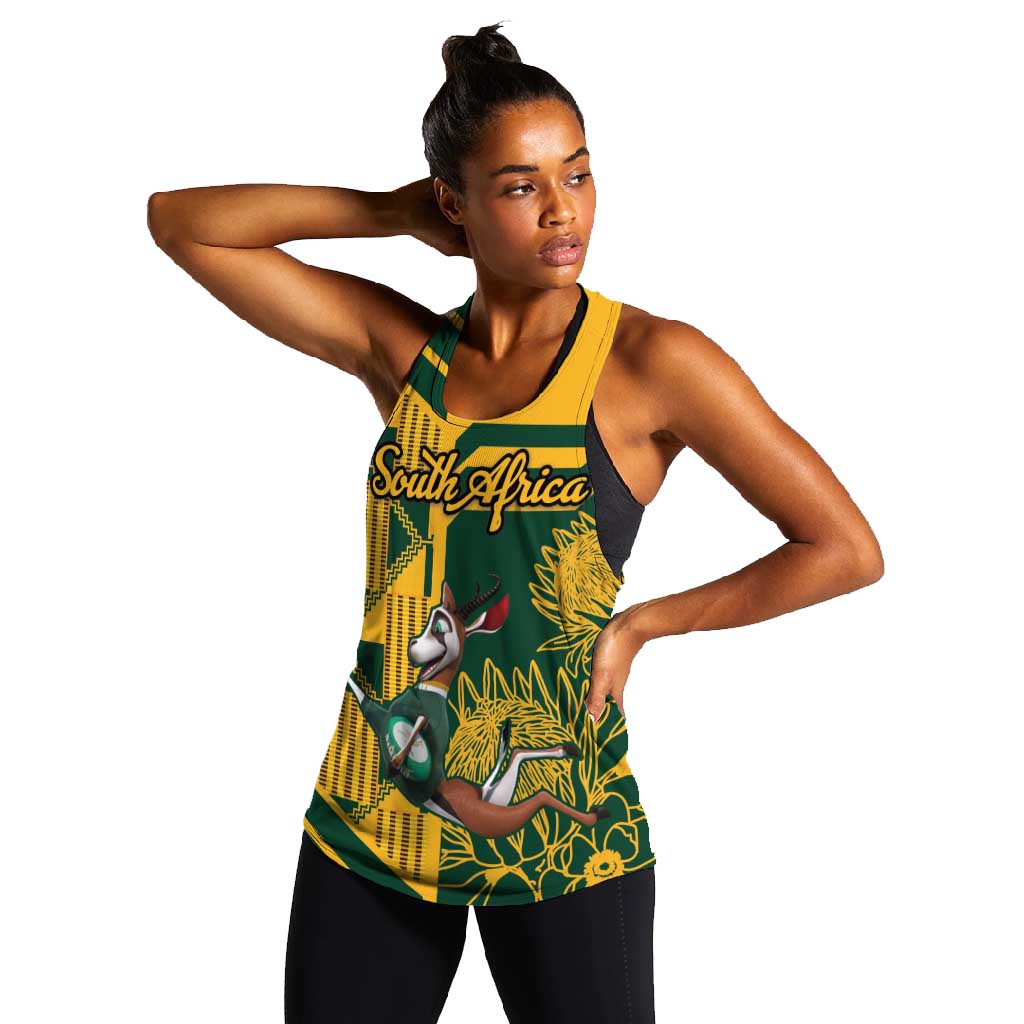 Custom South Africa Rugby Women Racerback Tank Springboks With Protea Cynaroides