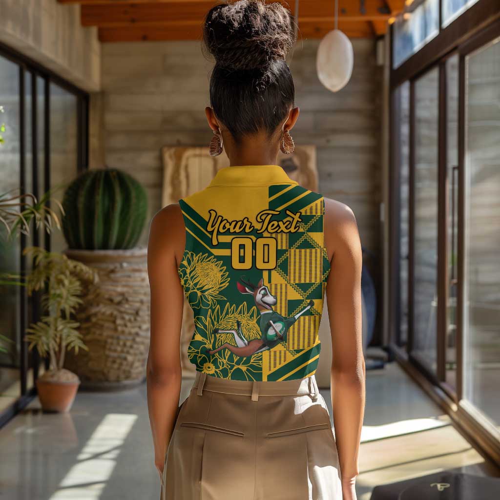 Custom South Africa Rugby Women Sleeveless Polo Shirt Springboks With Protea Cynaroides