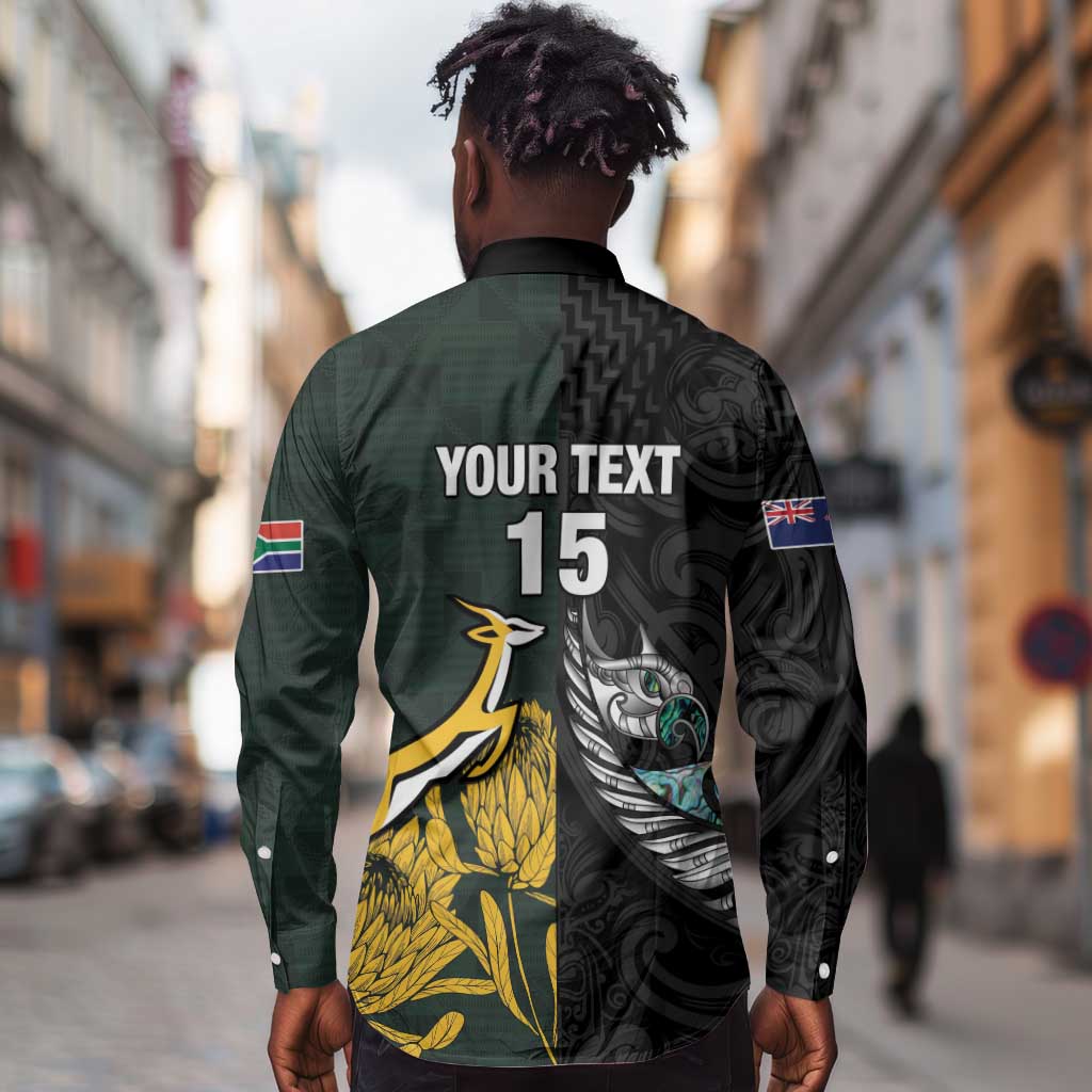 New Zealand vs South Africa Rugby Custom Long Sleeve Button Shirt Maori - African Pattern